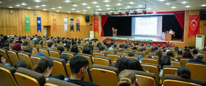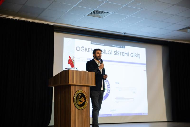 Oryantasyon Programı kapsamında Öğrenci İşleri Daire Başkanlığı adına; Şube Müdürü Kader ÇELEBİ, Şef Selim Arslan ve Memur Varol SEVGİLİ, Erasmus Koordinatörlükleri adına Öğr. Gör. Murat YAMAN, Öğr. Gör. Dr. Münire ÖZDEN, Kütüphane ve Dokümantasyon Daire Başkanlığı adına Kütüphaneci Remziye Avcıoğlu, Kütüphaneci Merve KESKİN, Kütüphaneci ÖZLEM CAN birimleri hakkında öğrencilerimize genel bilgiler verdiler.