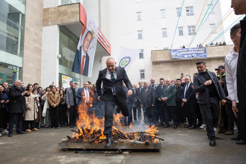 Protokol üyeleri, hazırlanan meşalelerle Nevruz ateşini yaktıktan sonra örs üzerinde demir dövdüler. Dilek ağacına kurdele bağlayan ve ardından yumurta tokuşturarak Nevruz geleneklerini yerine getiren misafirler daha sonra, alanda yanan Nevruz ateşinden atladılar.