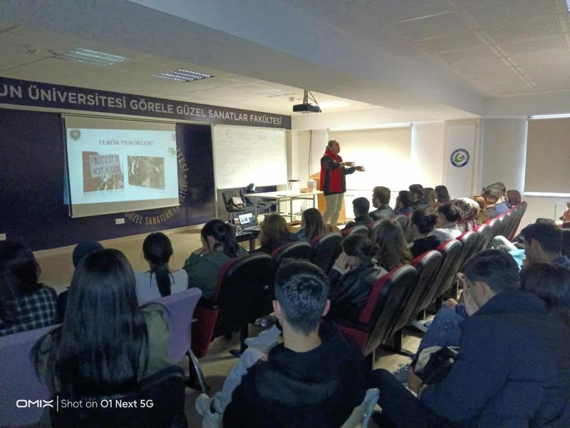 Giresun Valiliği İl Emniyet Müdürlüğü Terörle Mücadele Şube Müdürlüğü tarafından "Gençlik ve Güvenli Gelecek" projesi kapsamında, Üniversitemize yeni kaydolan hazırlık ve 1. Sınıf öğrencilerine yönelik olarak Üniversitemize bağlı tüm akademik birimlerde Emniyet Müdürlüğü personeli tarafından "terör ve terörizm nedir, terör örgütlerinin eleman kazanma yöntemleri nelerdir, madde bağımlılığı ve zararları," v.b. konularında bilgilendirme konferansları verilmesi planlanmıştı. Bu kapsamda Görele Güzel Sanatlar Fakültesinde "Gençlik ve Güvenli Gelecek" projesi kapsamında fakülteye yeni kaydolan hazırlık ve 1. Sınıf öğrencilerine yönelik olarak konferans düzenlendi.