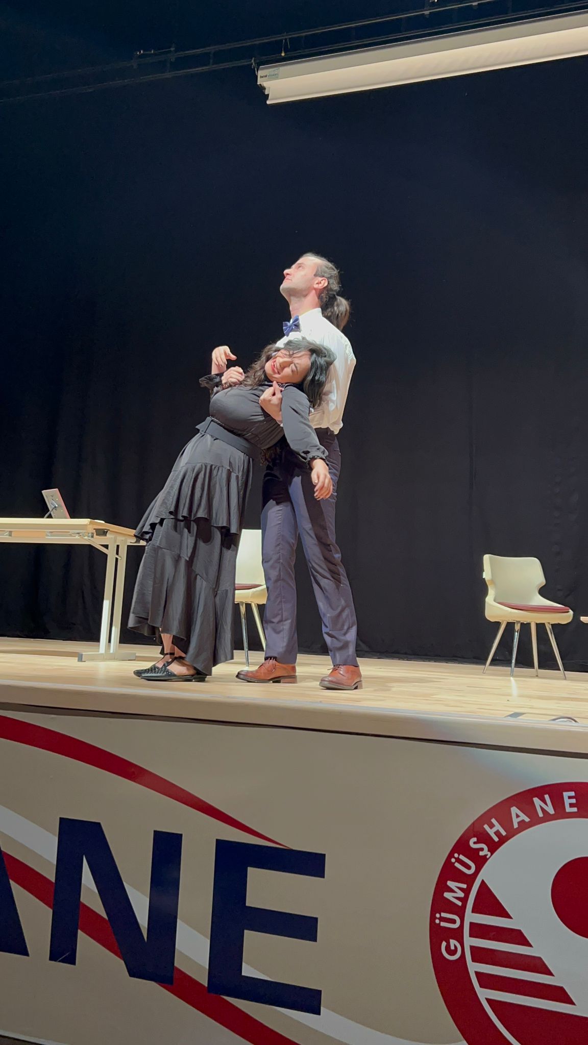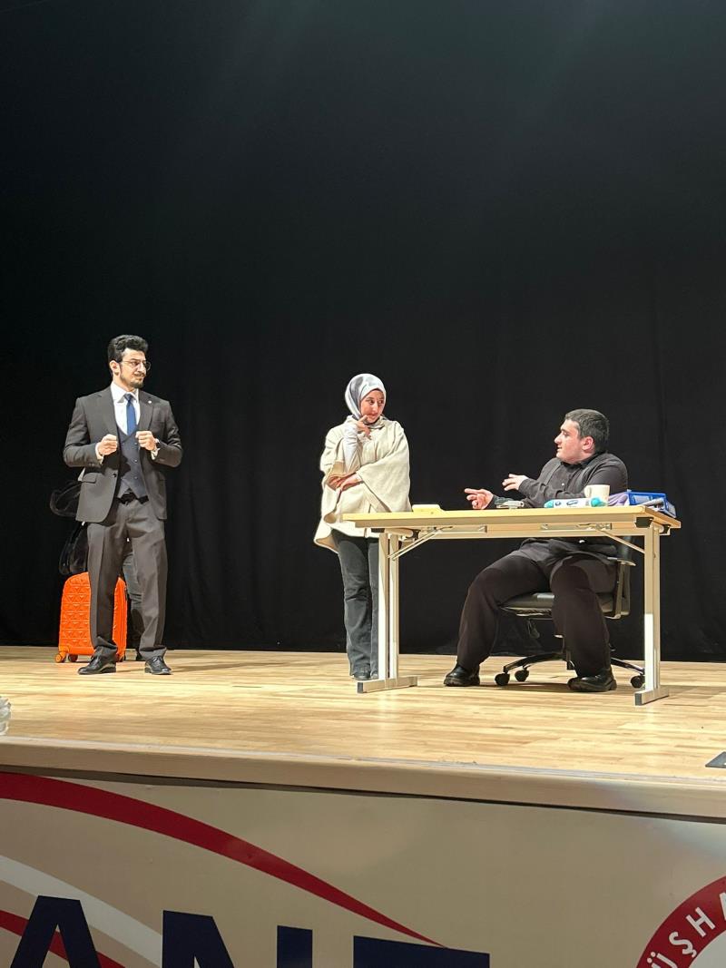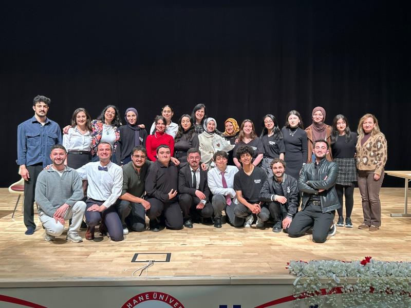 GRÜ Tiyatro Topluluğu tarafından kültür ve sanat faaliyetleri kapsamında gerçekleştirilen turne programı çerçevesinde, 17 Nisan 2026 Cuma günü saat 19.00'da Gümüşhane Üniversitesi Dr. Mustafa Çalık Kongre ve Kültür Merkezi Konferans Salonu'nda bir tiyatro etkinliği düzenlenmiştir. Söz konusu etkinlikte, Rus yazar Anton Çehov'un kaleme aldığı "Ayı" ve "Kutlama" adlı tek perdelik oyunlar sahnelenmiş olup, yaklaşık 600 kişinin katılımıyla başarıyla gerçekleştirilmiştir. Gerçekleştirilen bu etkinlik, üniversiteler arası kültürel etkileşimin artırılmasına katkı sağlamış, öğrencilerin sanatsal faaliyetlere katılımını teşvik etmiş ve tiyatronun birleştirici gücünü ön plana çıkarmıştır. Topluluğumuzu bu güzel etkinlik için tebrik ediyor, başarılarının devamını diliyoruz.
