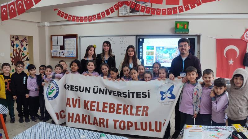 Mavi Kelebekler Çocuk Hakları Topluluğu tarafından 09 Mart 2026 Pazartesi günü Giresun Merkez Abdullah Bozbağ İlkokulunda çocuklara sahip oldukları hakları oyun yöntemi ile öğretmek ve kendi sahip oldukları haklarla ilgili farkındalık kazandırmak amacıyla "Haklarımı Oynayarak Öğreniyorum" adlı etkinlik düzenlendi.Topluluğumuzu tebrik ediyor, başarılarının devamını diliyoruz.
